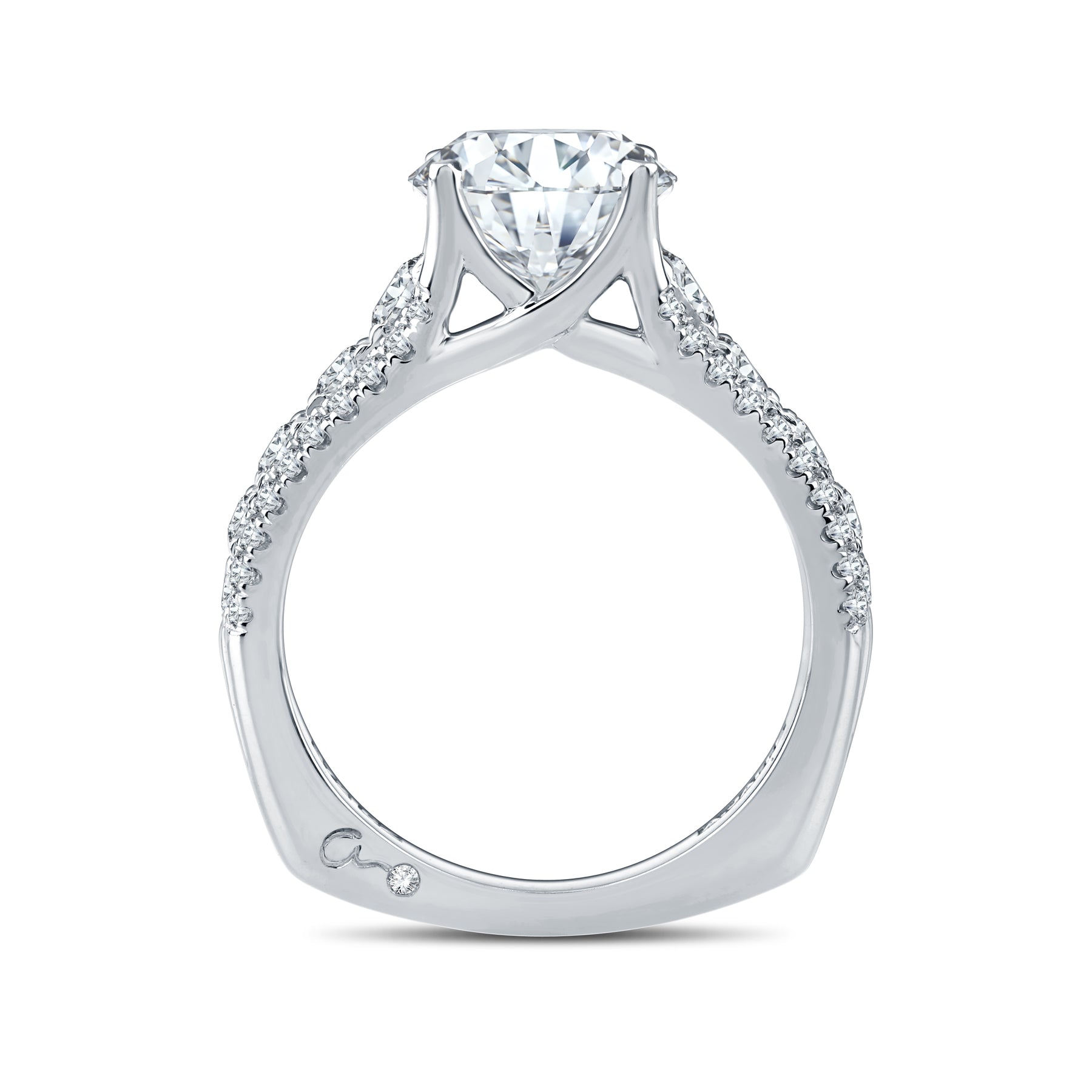 Triple Row Diamond Engagement Ring from A.Jaffe in Platinum . This wide and Brilliant ring is suitable to be set with a round brilliant cut center stone ranging in size from 1.00ct up to 3.50ct. Featuring A.Jaffe's signature square European shank. This is a wonderful choice for someone looking for a wider band look to hold a larger round stone. A wonderful anniversary ring choice as well. Set with 23 round brilliant cut diamonds for a total weight of 1.00ct.