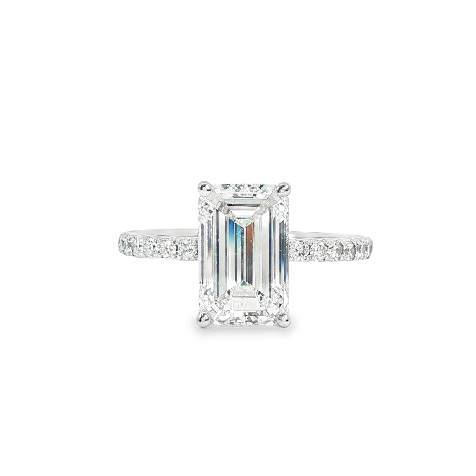 Classic Thin Diamond Band Engagement Ring in 18K White Gold with 2.50ct Emerald Cut Diamond J VS2 GIA