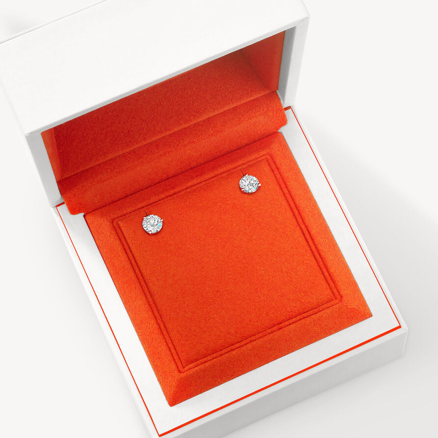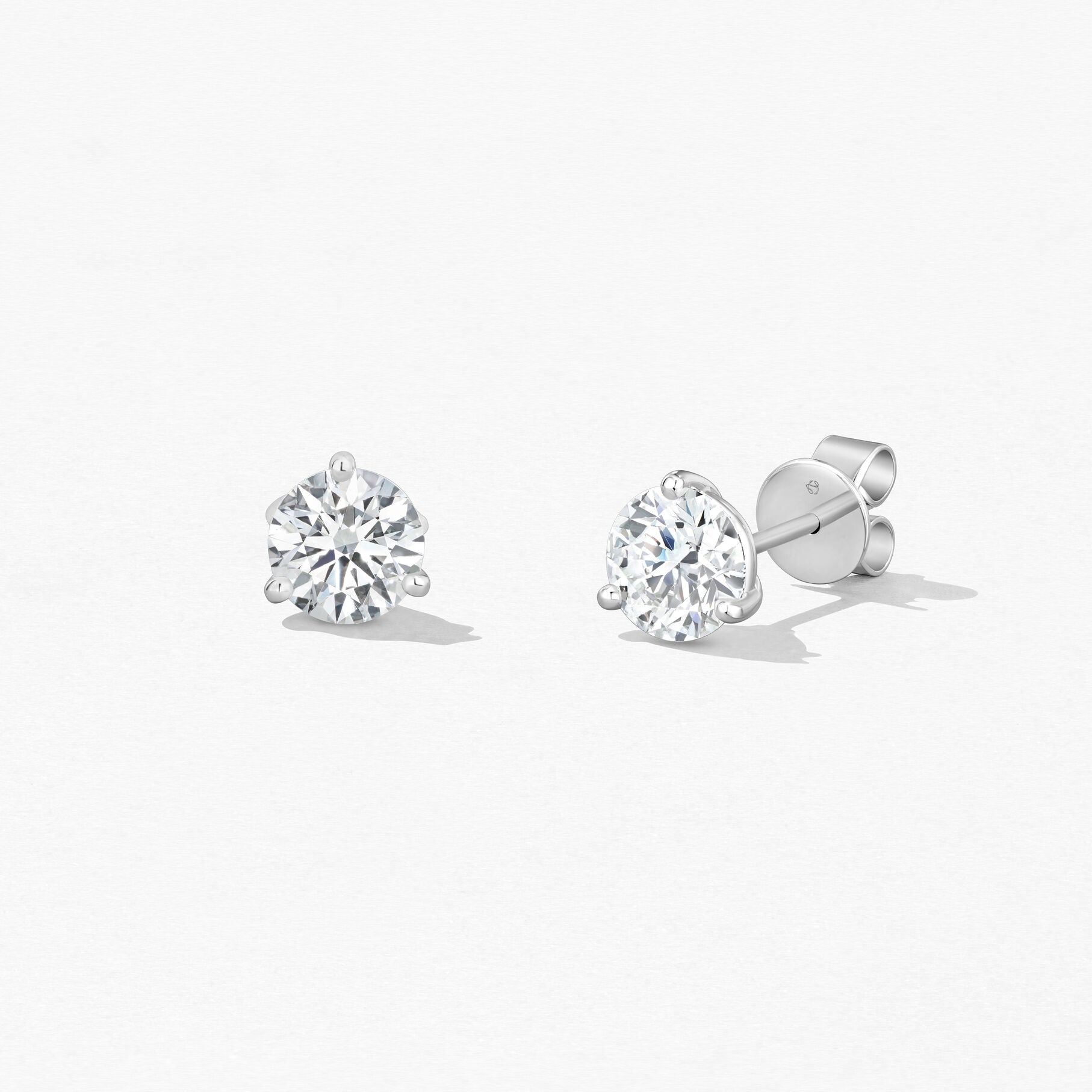 An everyday staple, the Three-Prong Stud Earrings feature an elegant yet minimal setting that captures the fiery brilliance of our perfectly cut diamonds. Featuring 2 round HOF cut in various metal options, diamond total weights and quality offerings.