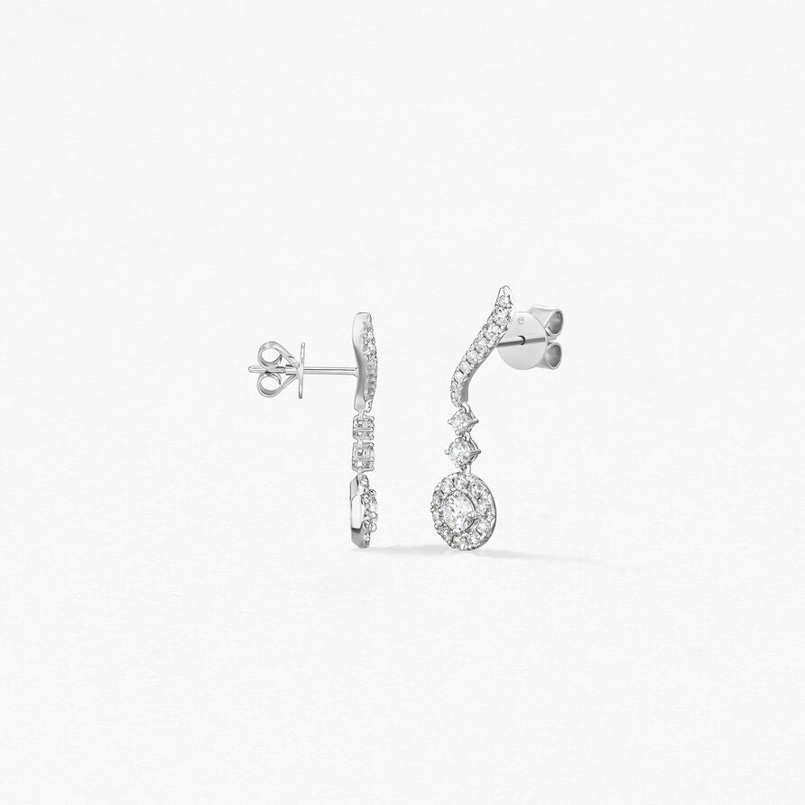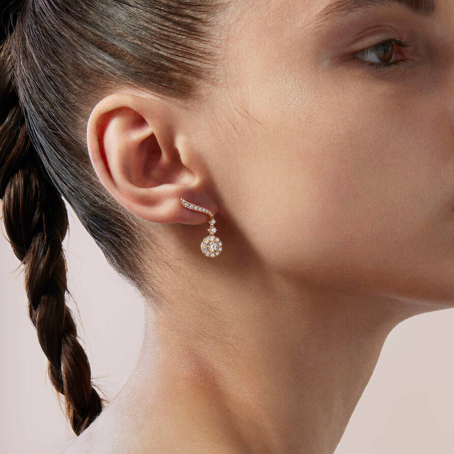 Perfect for everyday, the Vela Drop Earrings climb the ears for a feminine yet flattering look. A dangling diamond drop glimmers every time you wear them.