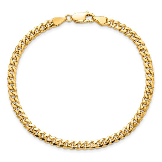 This solid 14K yellow gold Cuban link bracelet measures 4.25mm wide the perfect balance of sleek and strong. Finished with a secure lobster clasp and crafted in a comfortable 8-inch length, it’s made for everyday confidence and timeless style. A nice medium/thin width bracelet.