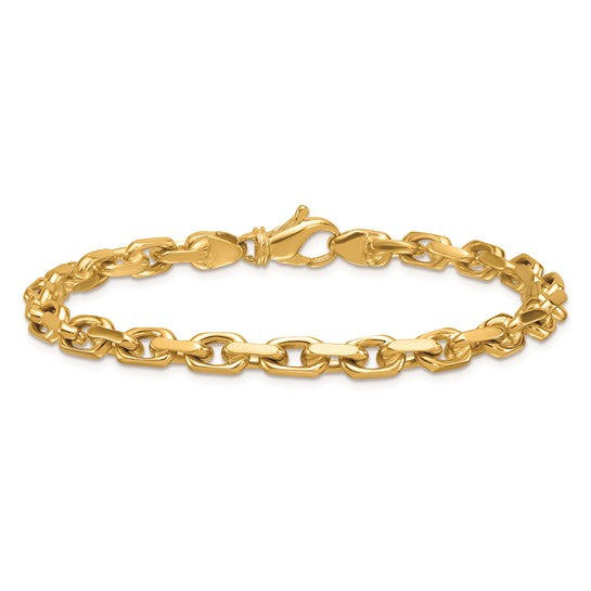 Bold Flat Edge Heavy Cable Link Bracelet. Crafted from 14k yellow gold and features 5.4mm bold flat edge links, providing a luxurious and sophisticated look and feel. Choose your length that matches your style.