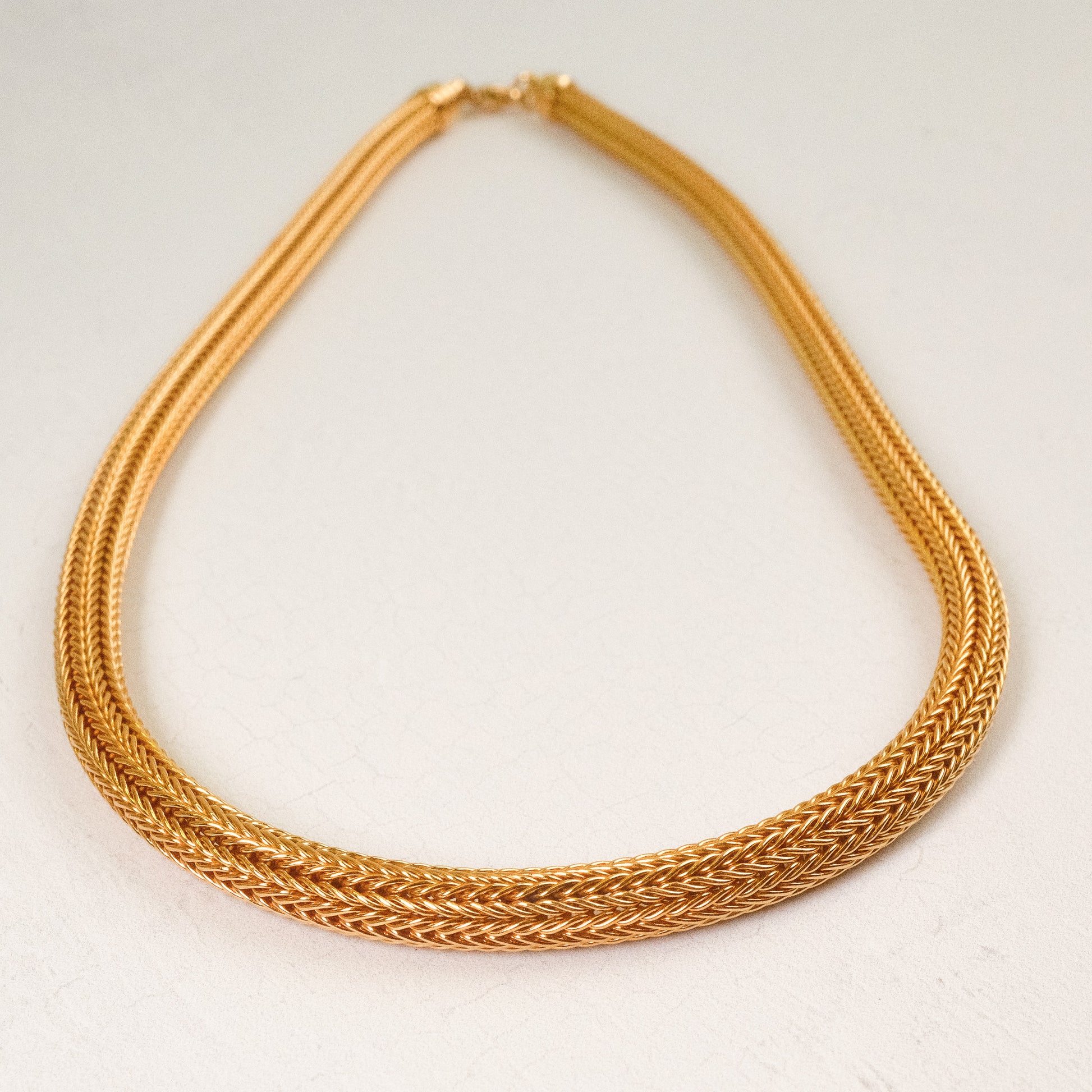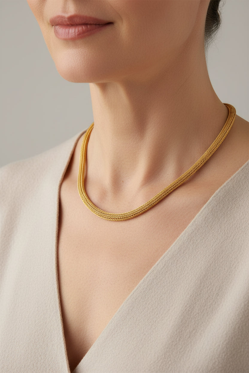 Softly flexible and richly woven, this timeless piece offers bold presence and enduring style an heirloom-worthy find for gold enthusiasts.