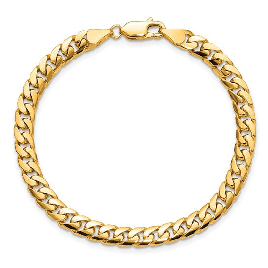 5.25mm Solid Cuban Link Bracelet - Yellow Gold - 8"