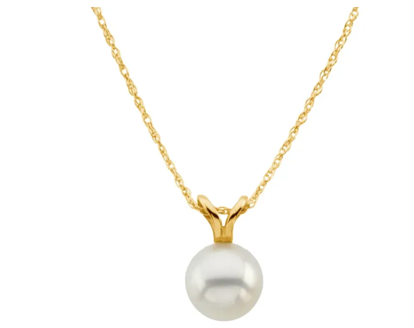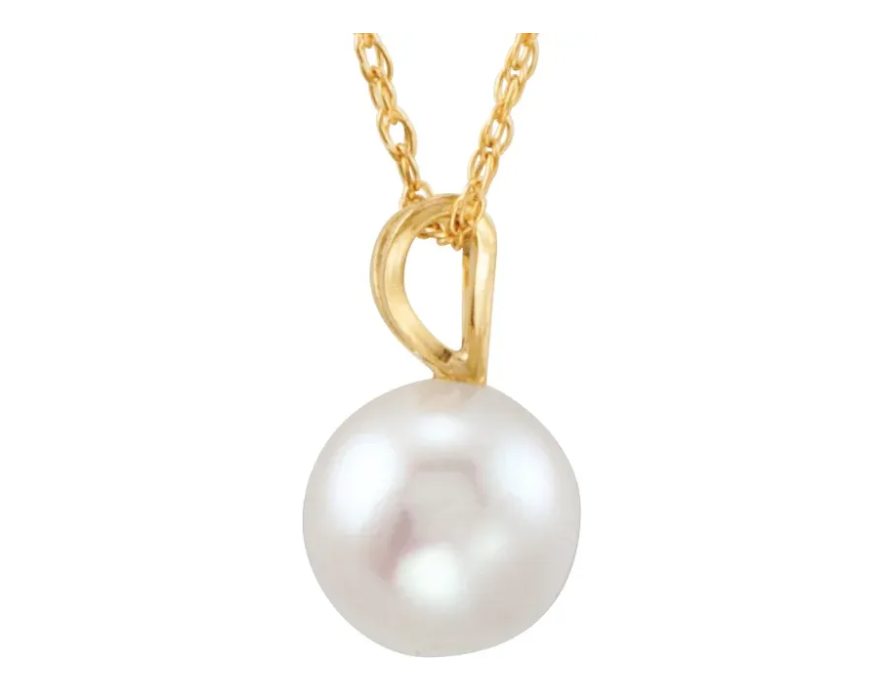 Classic White Akoya Pearl Solitaire Pendant in 14K Yellow Gold - Size Options