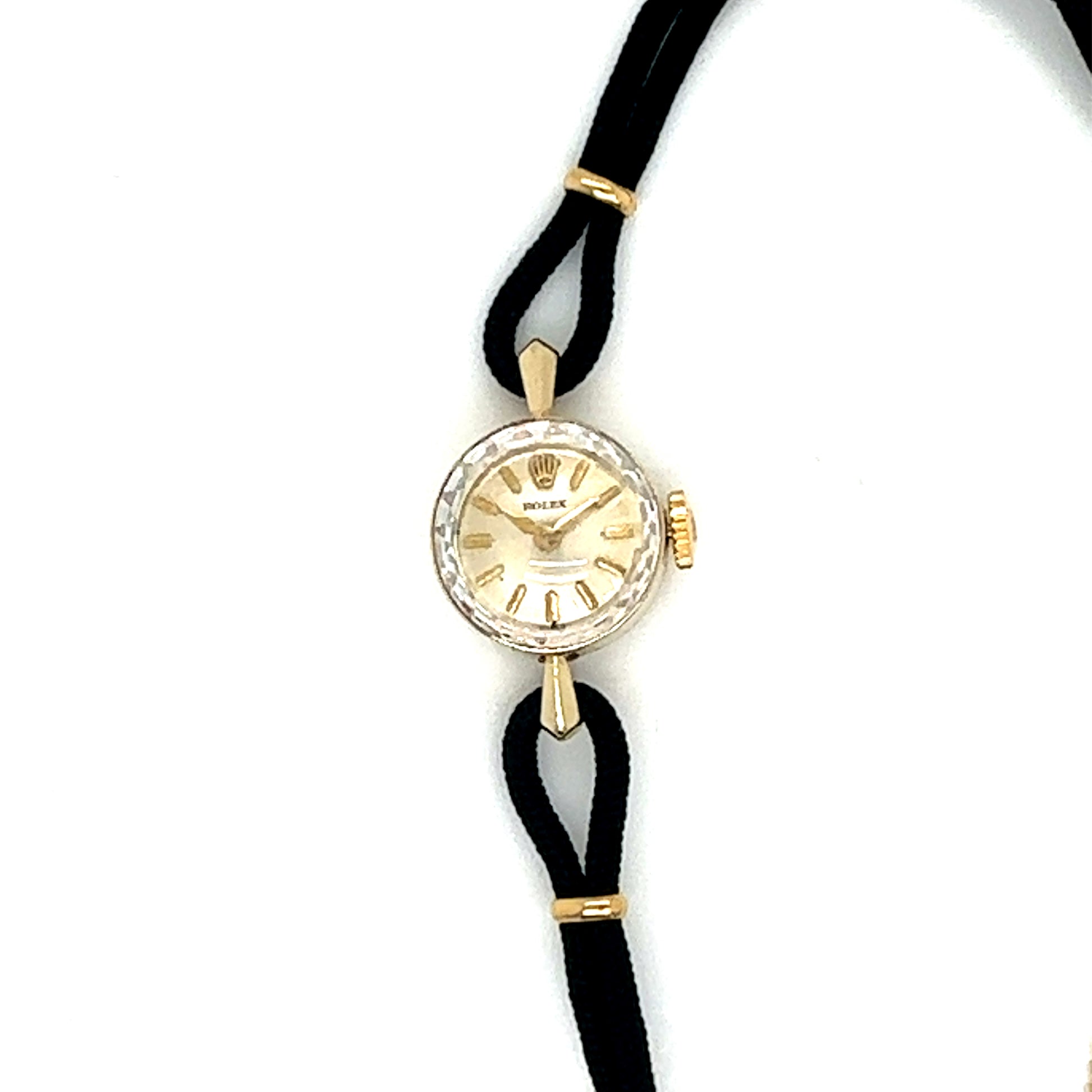 Indulge in timeless elegance with the Rolex 14K Cocktail Watch. This luxurious timepiece features a faceted crystal, 17 jewel caliber 1401 manual wind movement, all encased in stunning 14 karat yellow gold. With a petite 15mm size and vintage design from the 1960s, this exclusive piece is waiting for you to try on today at Jackson Jewelers.