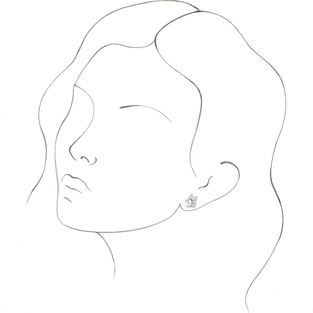 Akoya Pearl & Natural Diamond Cluster Stud Earrings - (1/2 ct. tw.)