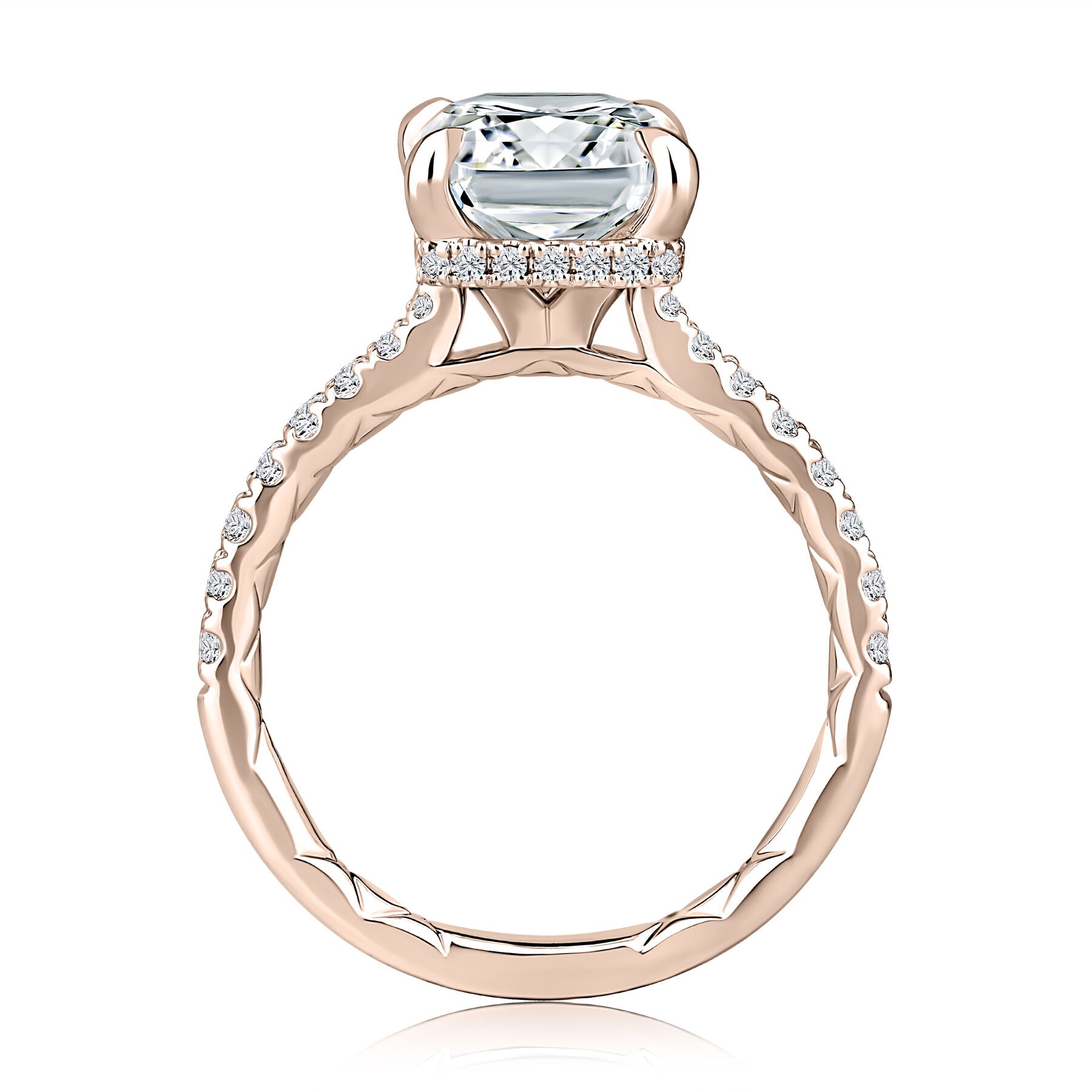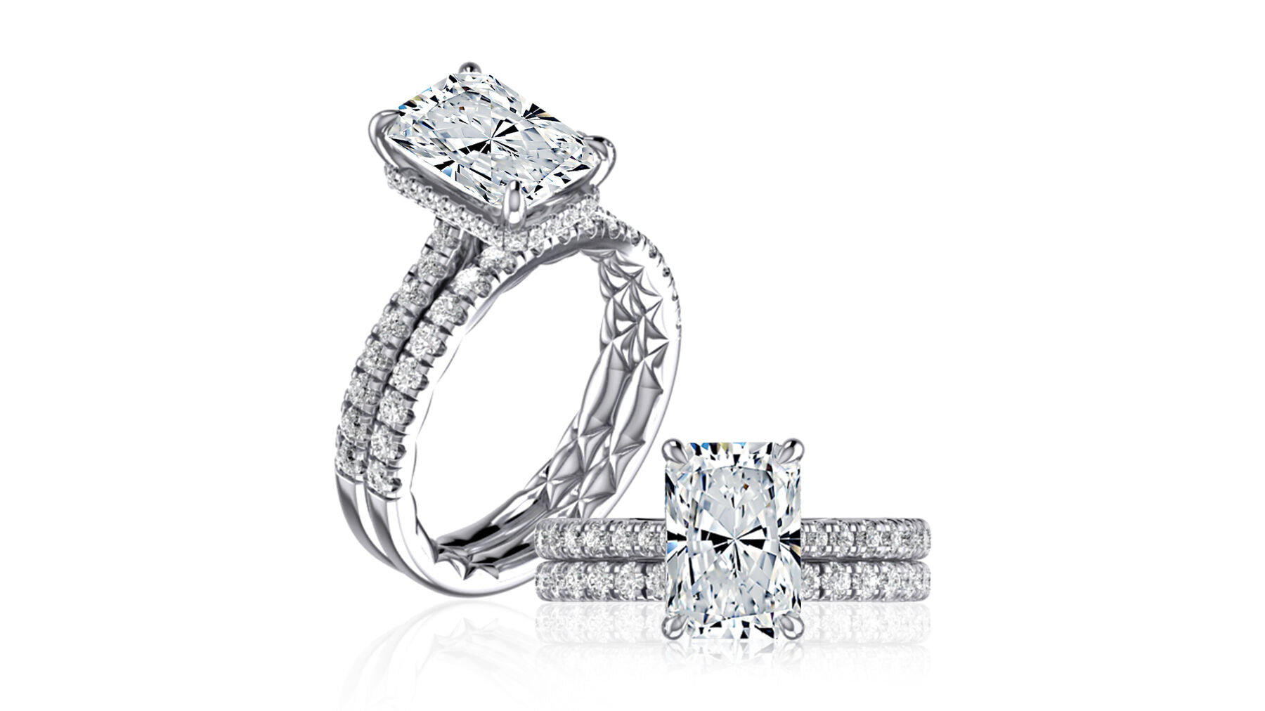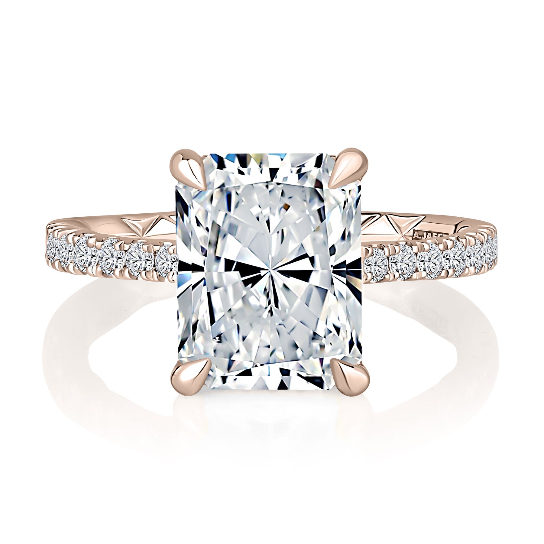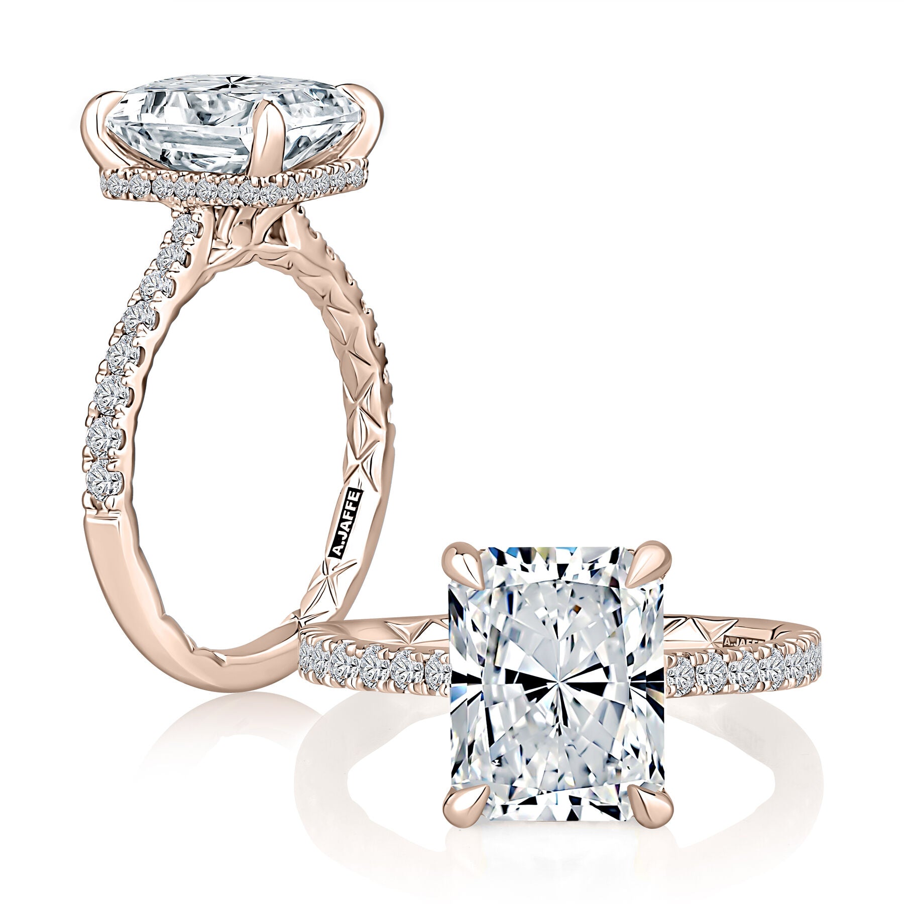 Radiant cut Engagement Ring with Hidden Halo. Available in multiple sizes of Radiant cut center stone ranging from size of 1.00ct- 3.00ct. Larger sizes are available upon request. This beautiful thin diamond band engagement ring is available in white, yellow and rose gold. A perfect option for someone wanting a thin band big diamond look!!